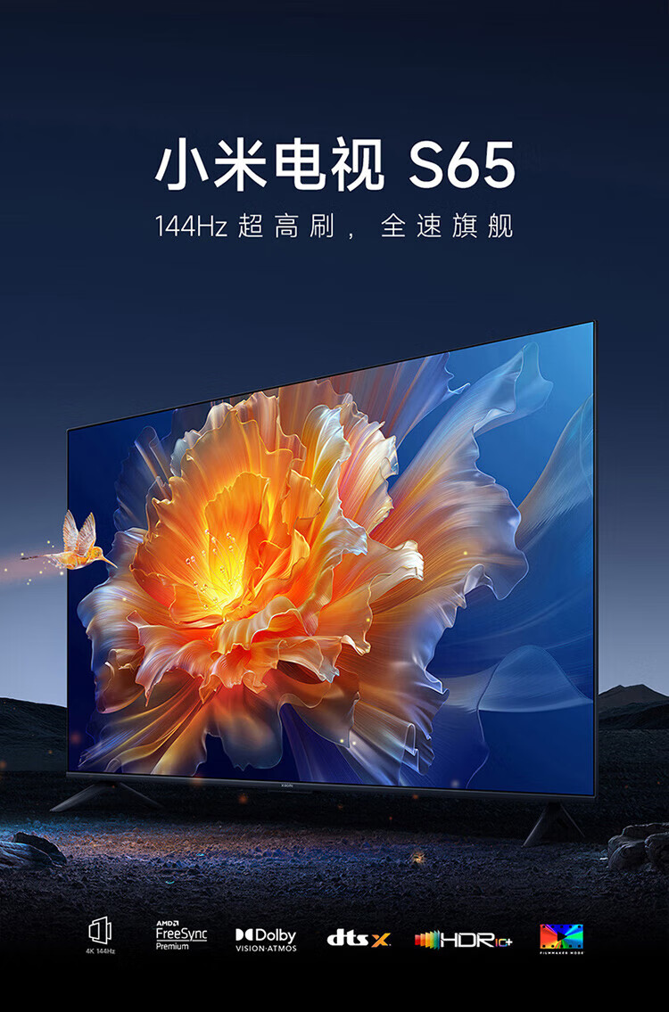 小米(MI)S65 65英寸4K 144Hz超高刷全速旗舰游戏电视 WiFi 6 3GB+32GB金属全面屏智能电视L6